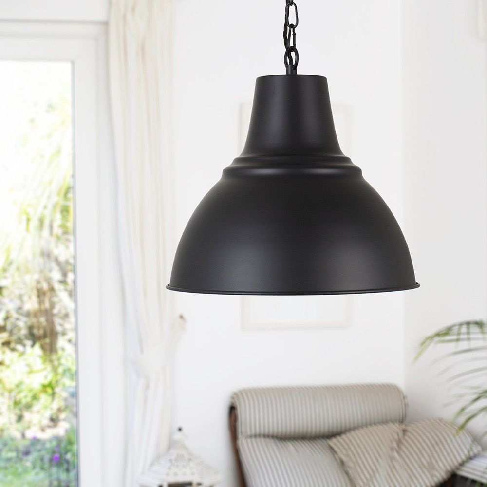 The Compton Caged Bell Pendant in matt black is glorious with its industrial style and bell shape. It adds wonderful character to a room, and is available in a range of desirable colours to suit your colour scheme.