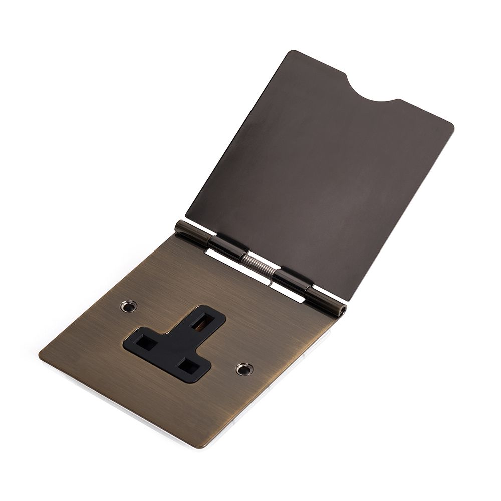 The Charterhouse Collection 13A 1 Gang Floor Socket Blk Ins Antique Brass
