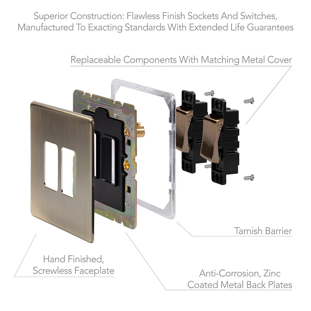 This luxury Antique Brass 13A 1 Gang Floor Socket is plated, brushed and aged to create the warmest of our finishes and a perfect complement for many period styles.
