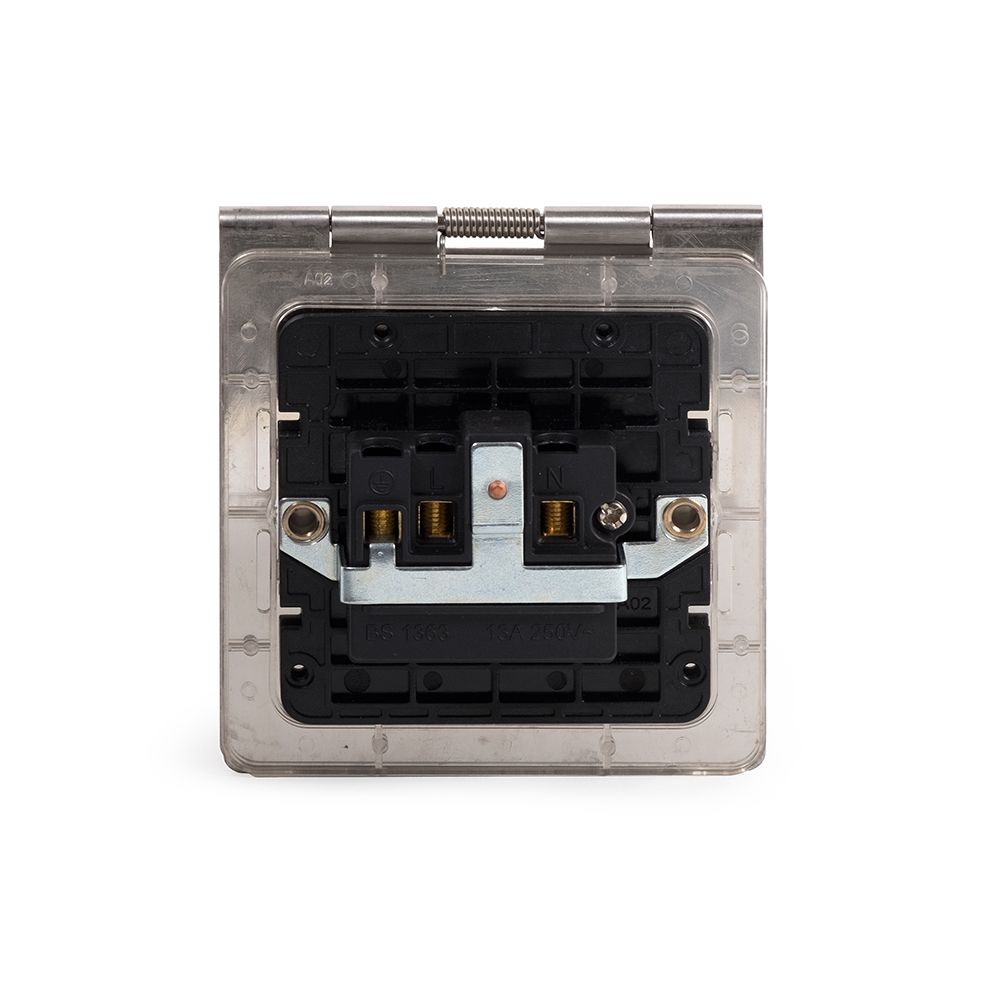 This Brushed Chrome 13A 1 Gang Floor Socket has a distinctive appearance and the stylish screwless finish provides a warmer tone than polished chrome and has the added benefit of hiding fingerprints and small blemishes. The smooth, rounded edges and subtle lustre and sheen finish give this collection an understated style which makes it compatible with most interiors making it a very popular choice.