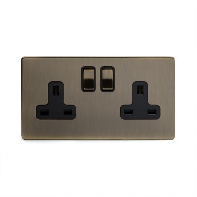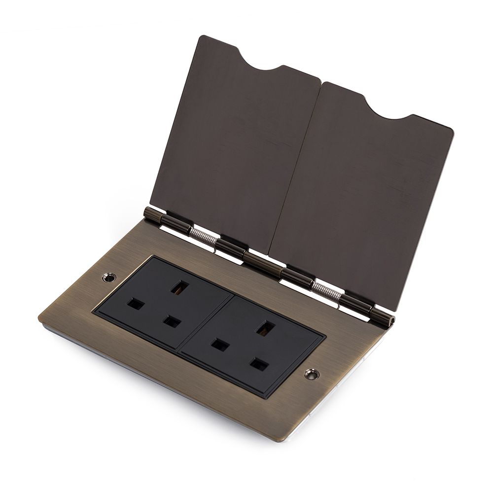 The Charterhouse Collection 13A 2 Gang Euromod Floor Socket Blk Ins Antique Brass