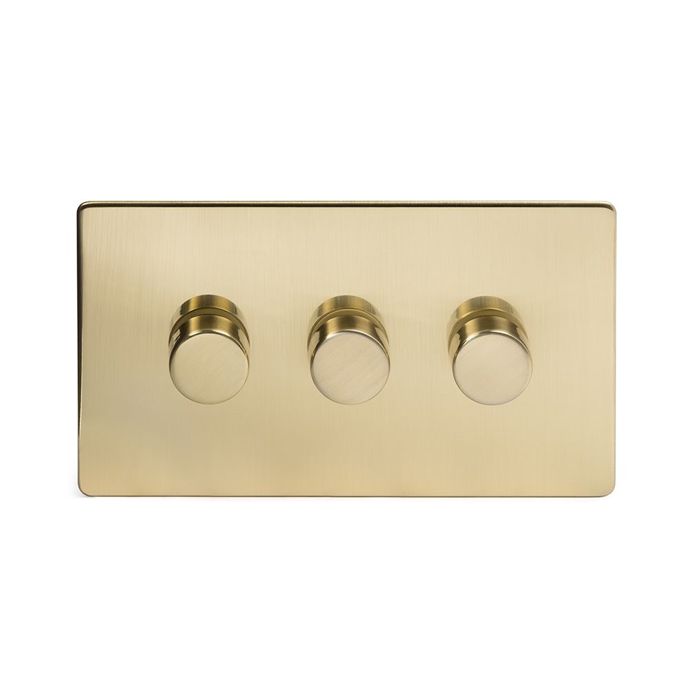 The Savoy Collection Brushed Brass 3 Gang 2 -Way Intelligent Dimmer 150W LED (300w Halogen/Incandescent)