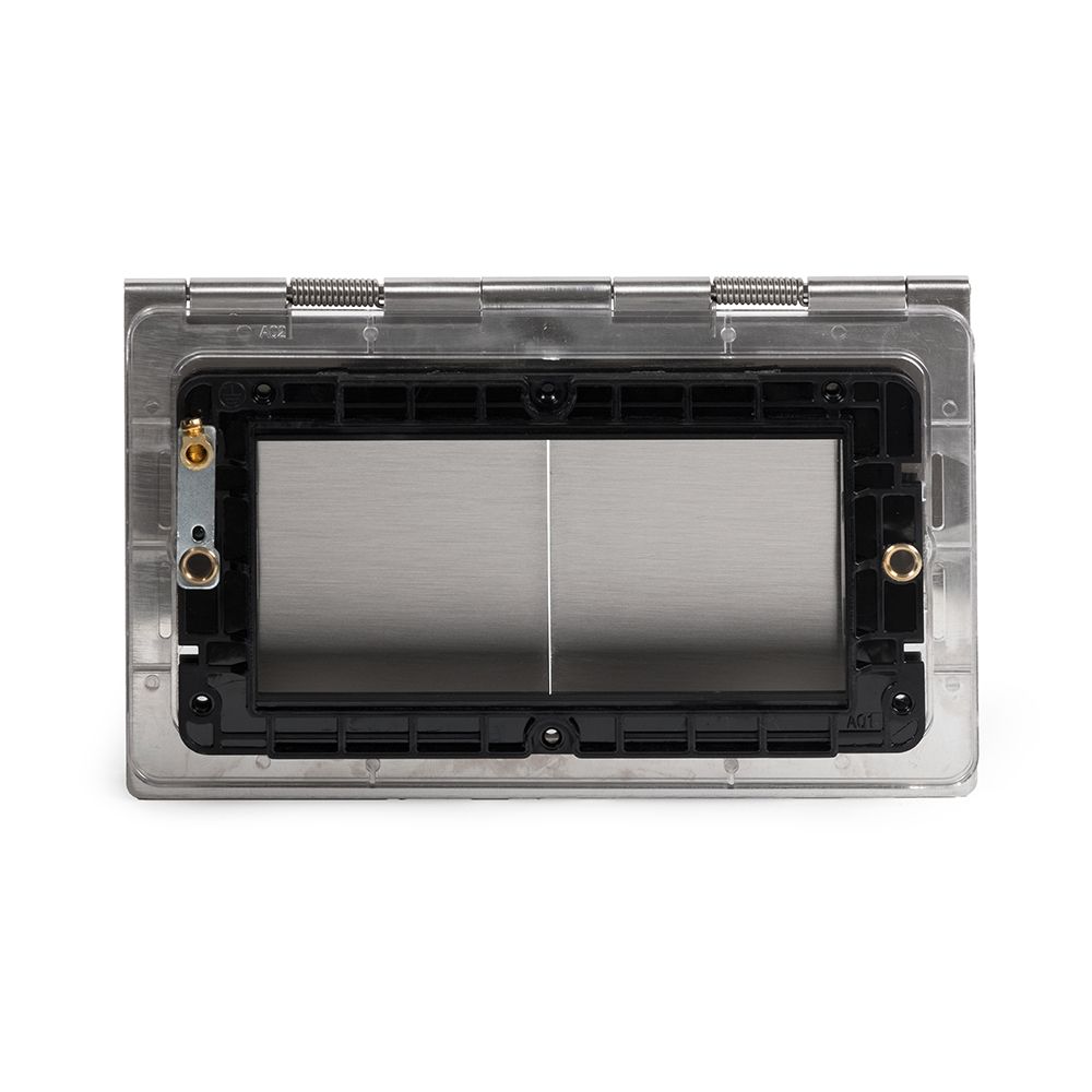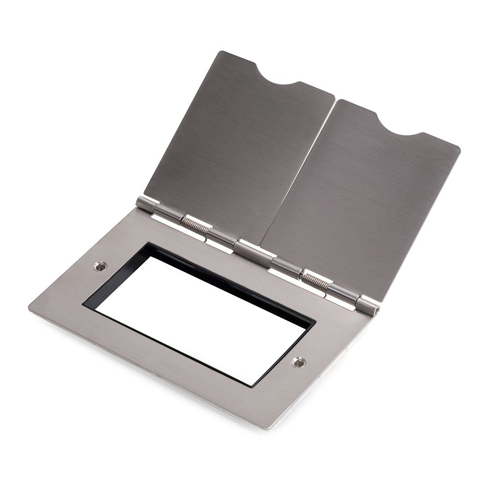 Our 4 x25mm EM-Euro Module Floor Plate from the Lombard Collection is compatible with 2x25mm or 1x50mm EM modules only. This enables you to create a wide range of bespoke socket or multimedia outlet plates. This Euro-Module plate is not compatible with RM, CM, LT1, LT2 or LT3 modules.