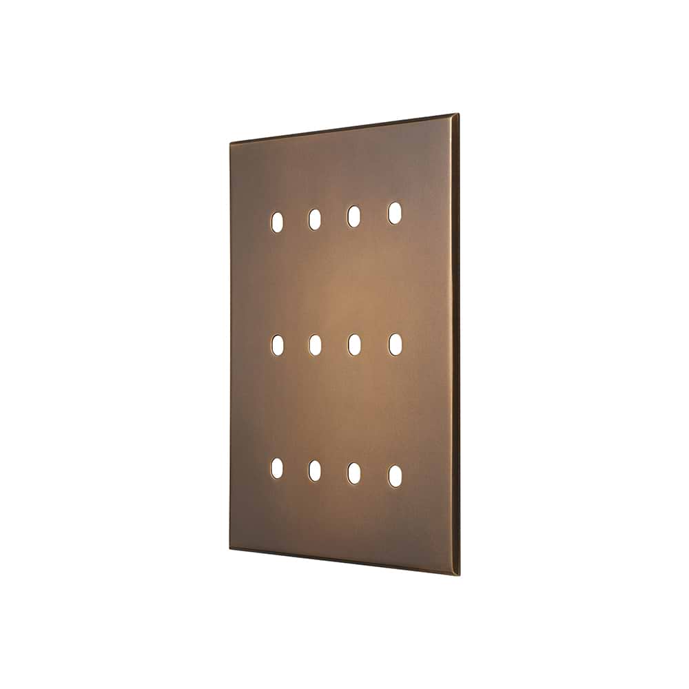 This 12 Gang TM Module Grid Switch Plate, finished in luxurious Aged Brass embodies the history and craftsmanship of the palaces. Treated to evoke a timeworn appearance, it will add character and depth to your interior.