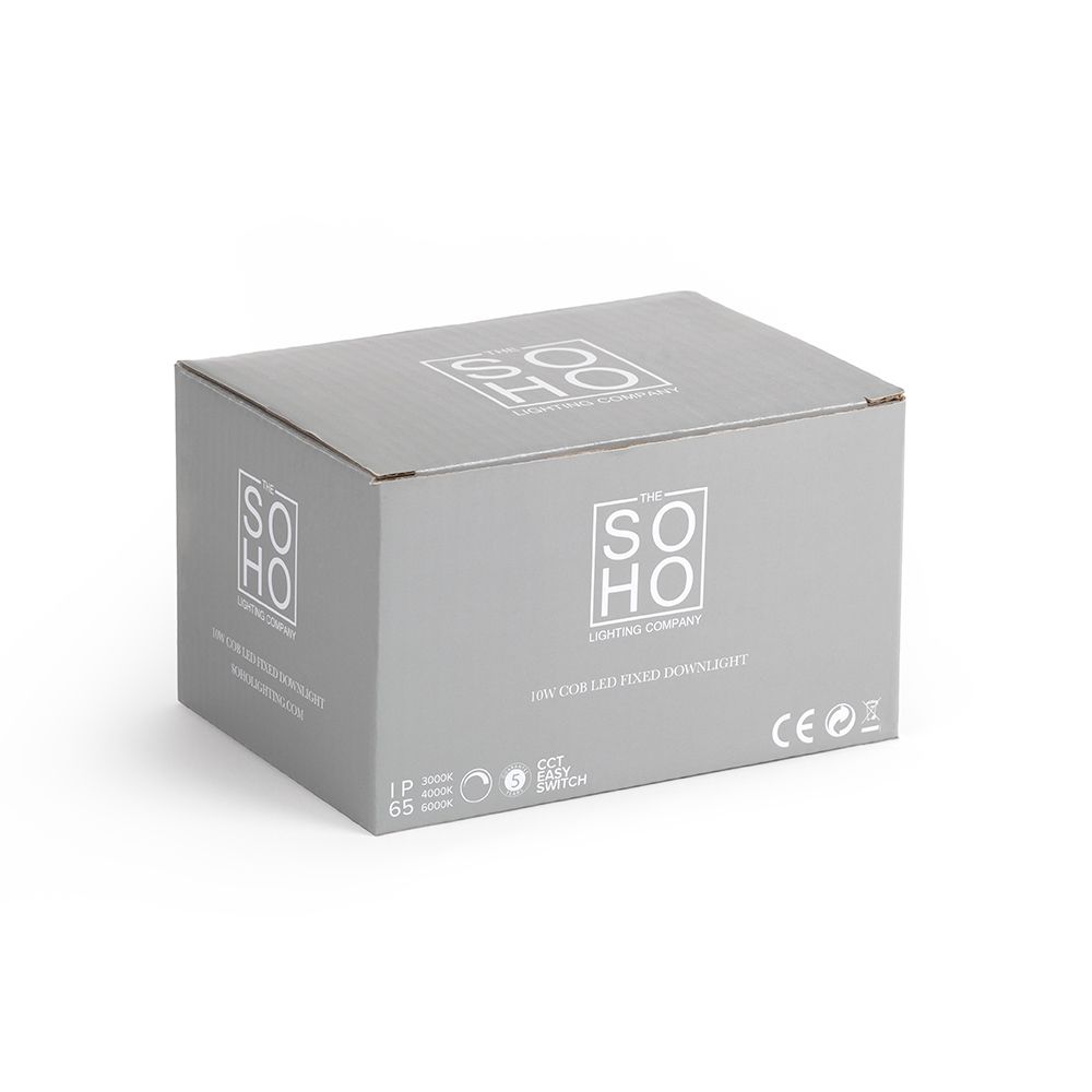 High CRI LED downlights in a beautiful Antique Brass finish. This high CRI fixed Antique Brass LED downlight from our collection of Soho Lighting dimmable fire rated downlights has a front-facing CCT easy switch (Changing Colour Temperature) for easy access which enables you to quickly change between 3000K (warm white), 4000K (daylight white) and 6000K (cool white).