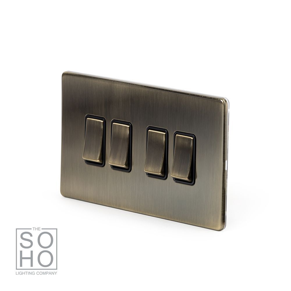 The Charterhouse Collection 4 Gang Intermediate switch Blk Ins Screwless Antique Brass