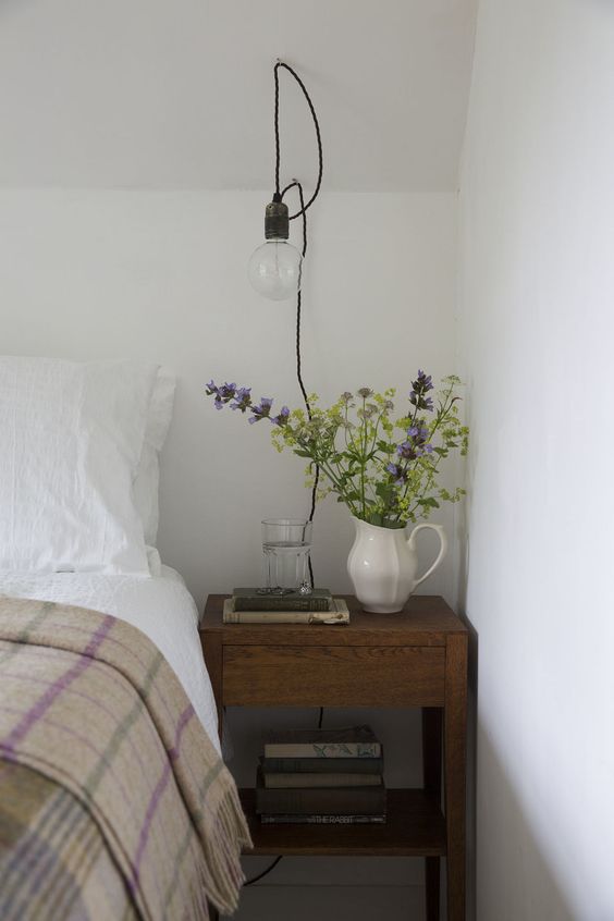 Another rustic alternative is to add wall lights to either side of the bed or by building them into a rustic, wooden headboard. This is a great way to create a well lit lit space, whilst it looks fab during the rest of the day too. Like exposed bulbs, this look is unobtrusive and gives you more room for rustic styling on a bedside table.