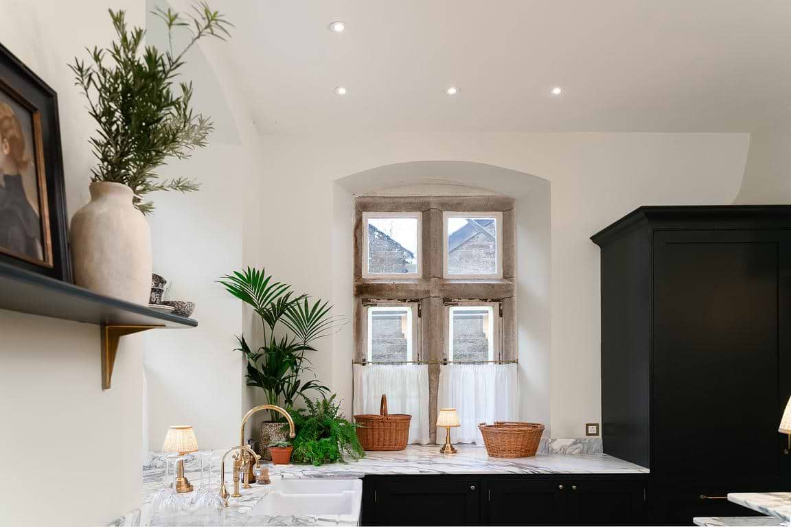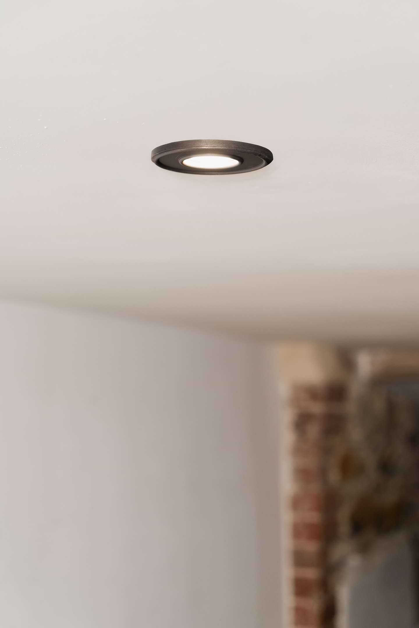 Matt black downlights work beautifully with white ceilings but only when black is echoed elsewhere in the scheme, and with dark ceilings where you want a subtle, tonal effect. They suit interiors styled in industrial, contemporary, monochrome, minimal and modern farmhouse styles. Matt black offers graphic punctuation and a confident modern edge, and its sleek presence feels most at home when the room features repeated black accents for balance. Avoid this finish in warm, soft or traditionally styled schemes where no other black details appear.