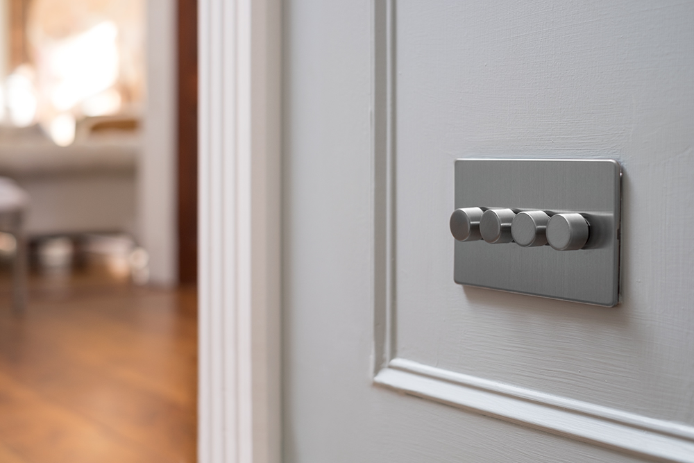 Dimmer switches put you in charge of how you want to illuminate your home. Turning down the lighting during the evening will create a cosy, warming and atmospheric setting. Up the ante for those dark mornings where there is limited light.