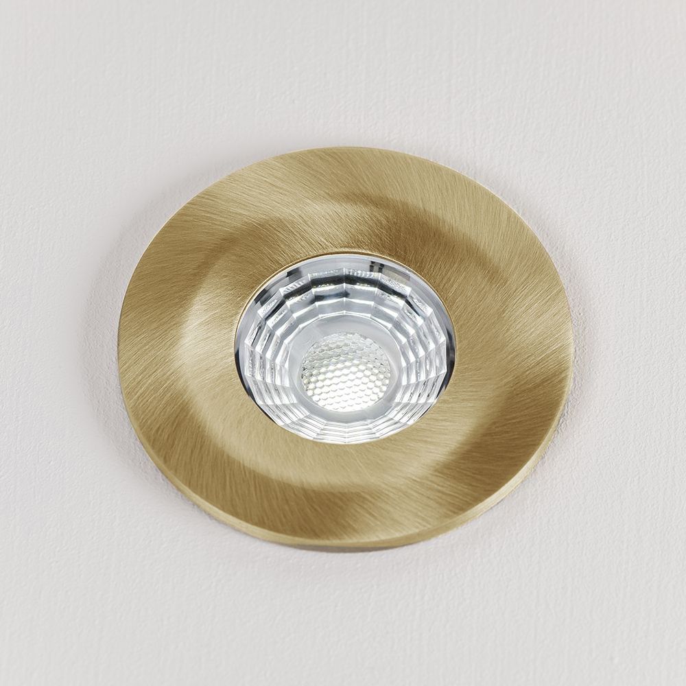 Soho Brushed Brass LED Downlights, Fire Rated, Fixed, IP65, CCT Switch, High CRI, Dimmable