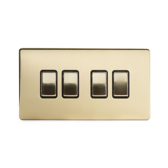 The Savoy Collection Brushed Brass 4 Gang Intermediate switch Blk Ins Screwless