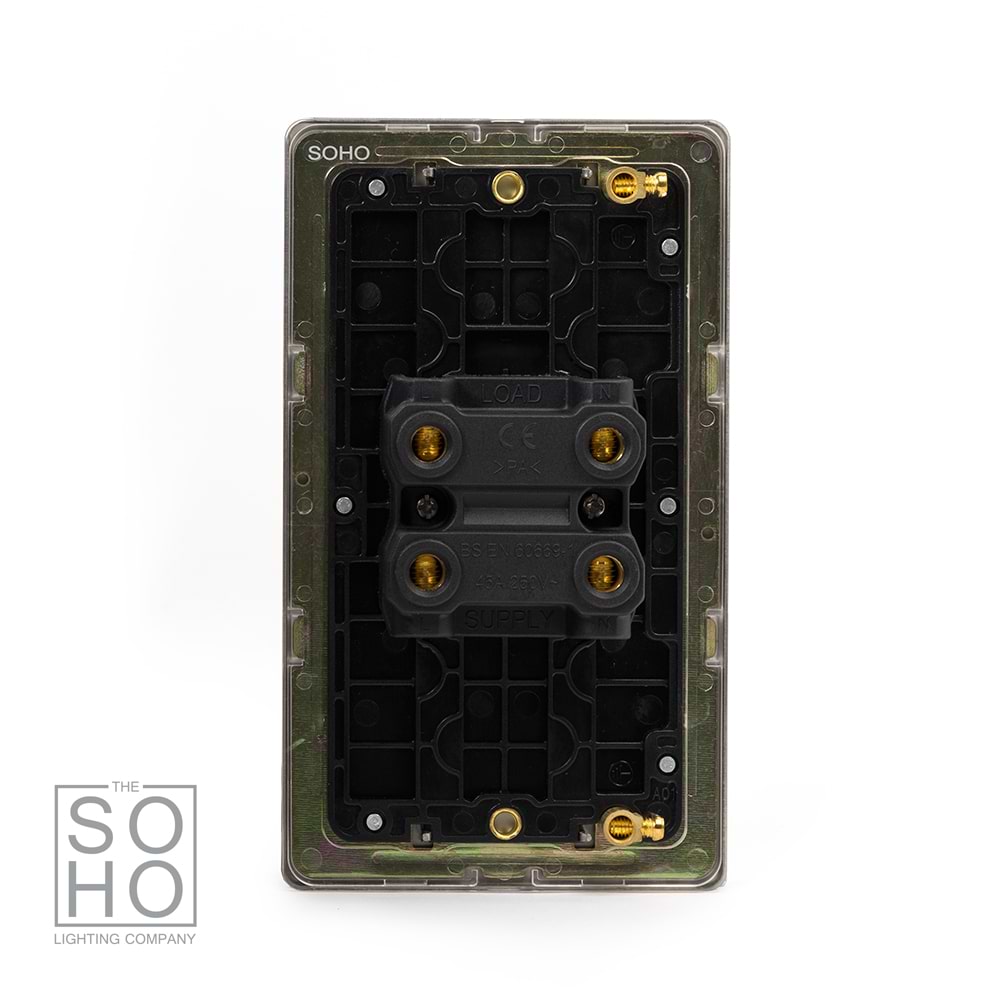 The Lombard Collection Brushed Chrome 45A 1 Gang Double Pole Switch Double Plate Blk Ins Screwless