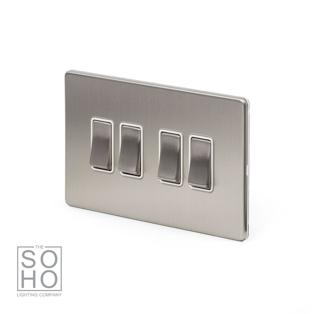 The Lombard Collection Brushed Chrome 4 Gang Intermediate switch Wht Ins Screwless