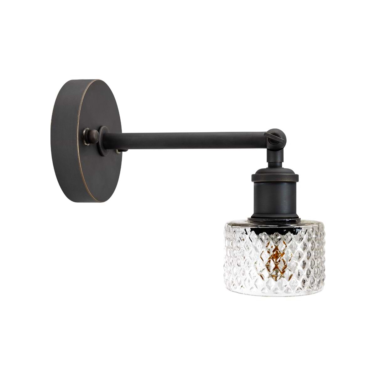 Wall mounted with an adjustable arm that comes in a choice of finishes: brass and bronze.