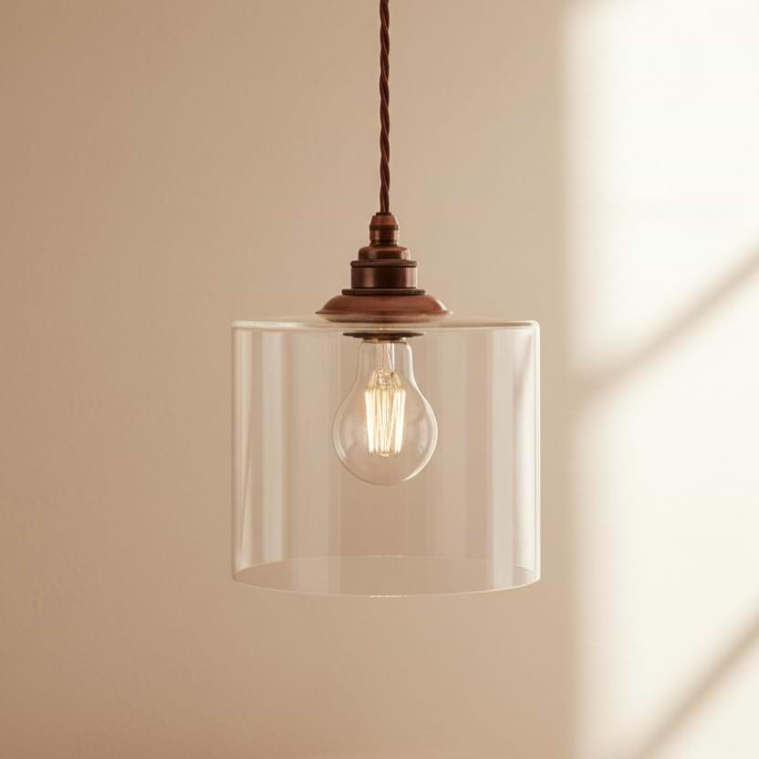 The smallest relation of the Lowell pendant family, the petite Lowell delivers refined elegance to any interior design. This stunning handblown clear glass cylindrical shade casts out an uninterrupted wash of light.