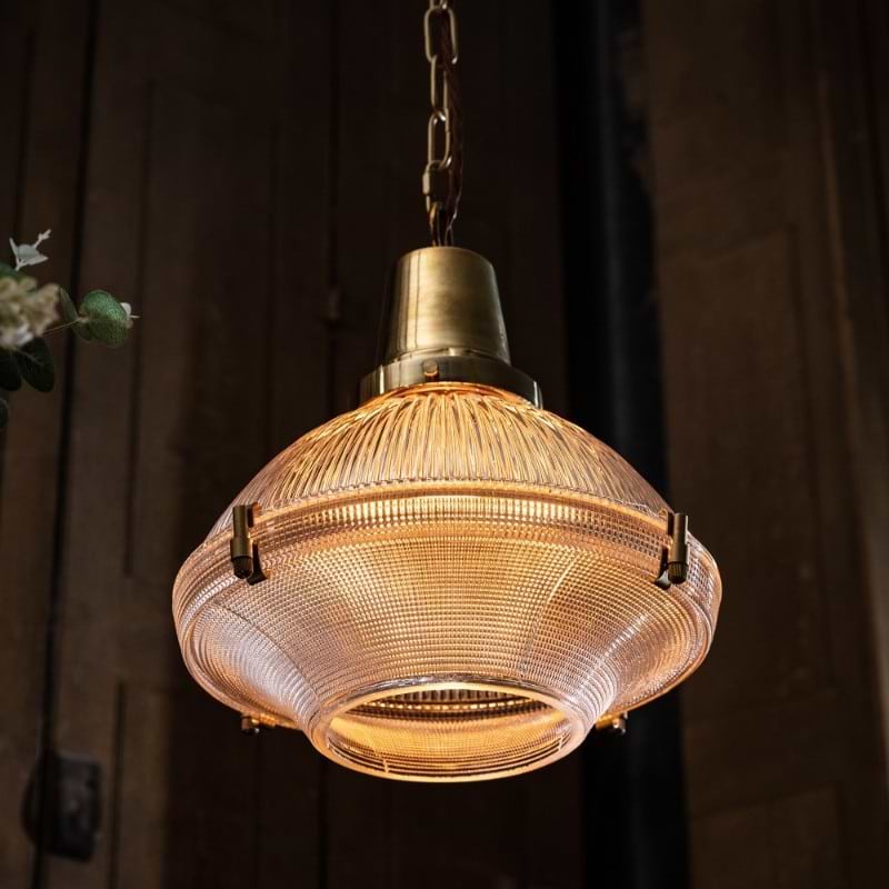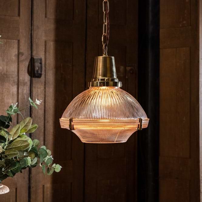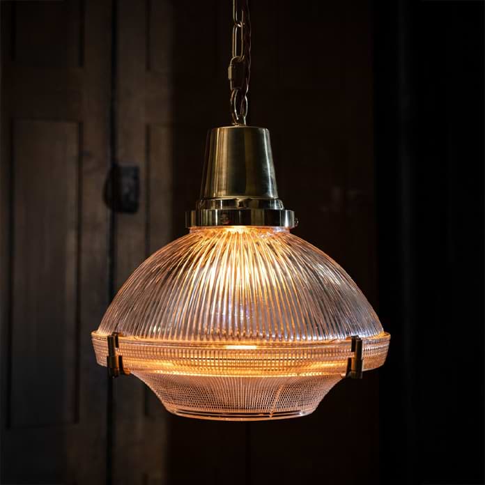Inspired by the early 1900s Industrial Brimmed Dome™ Holophane Pendant, our Hollen pendant exudes sophistication and charm. Its quality cut glass dome features three intricate prismatic patterns, ensuring optimal light distribution. This iconic light looks stunning as a central pendant or in a row above a kitchen worktop.