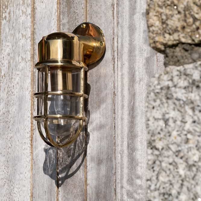 Made with real solid brass, perfect for outdoor and bathroom as this light will not corrode. The brass ages naturally beautifully, but can be brought back to its original finish with the use of suitable brass polish.