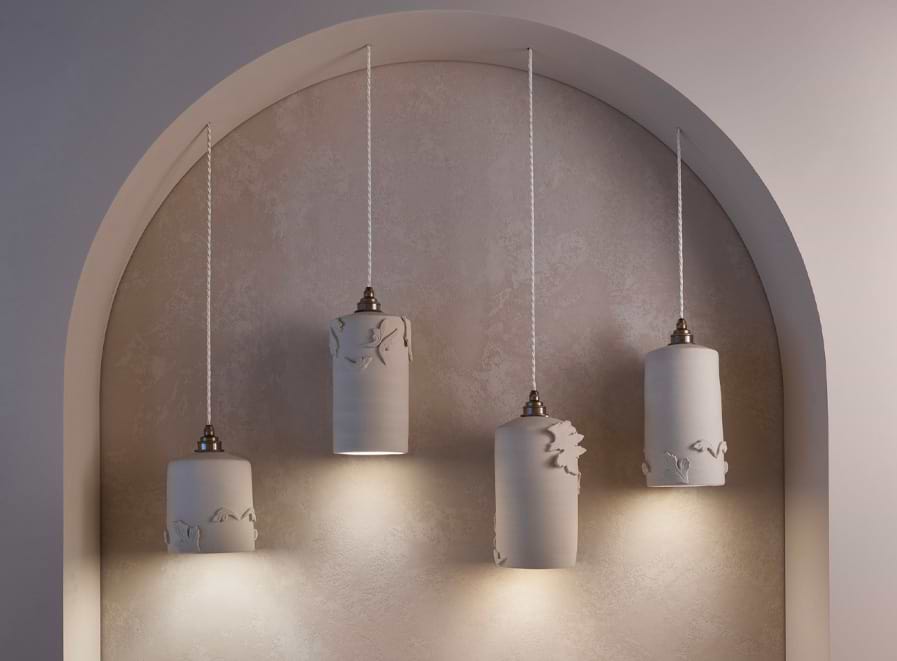 Drawing inspiration from the acanthus leaves of the iconic Tijou gates at Hampton Court Palace, we have worked with Cornish ceramicist Funda Ersoysal of Studio Agni to create a new collection of beautiful pendants. Each ceramic shade is hand-thrown in Cornish clay and delicately detailed with acanthus motifs.