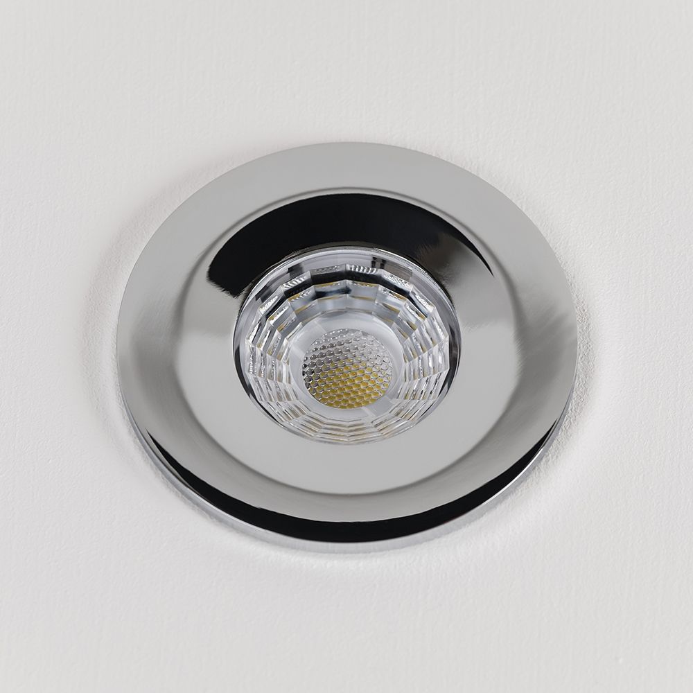 Soho Polished Chrome LED Downlights, Fire Rated, Fixed, IP65, CCT Switch, High CRI, Dimmable