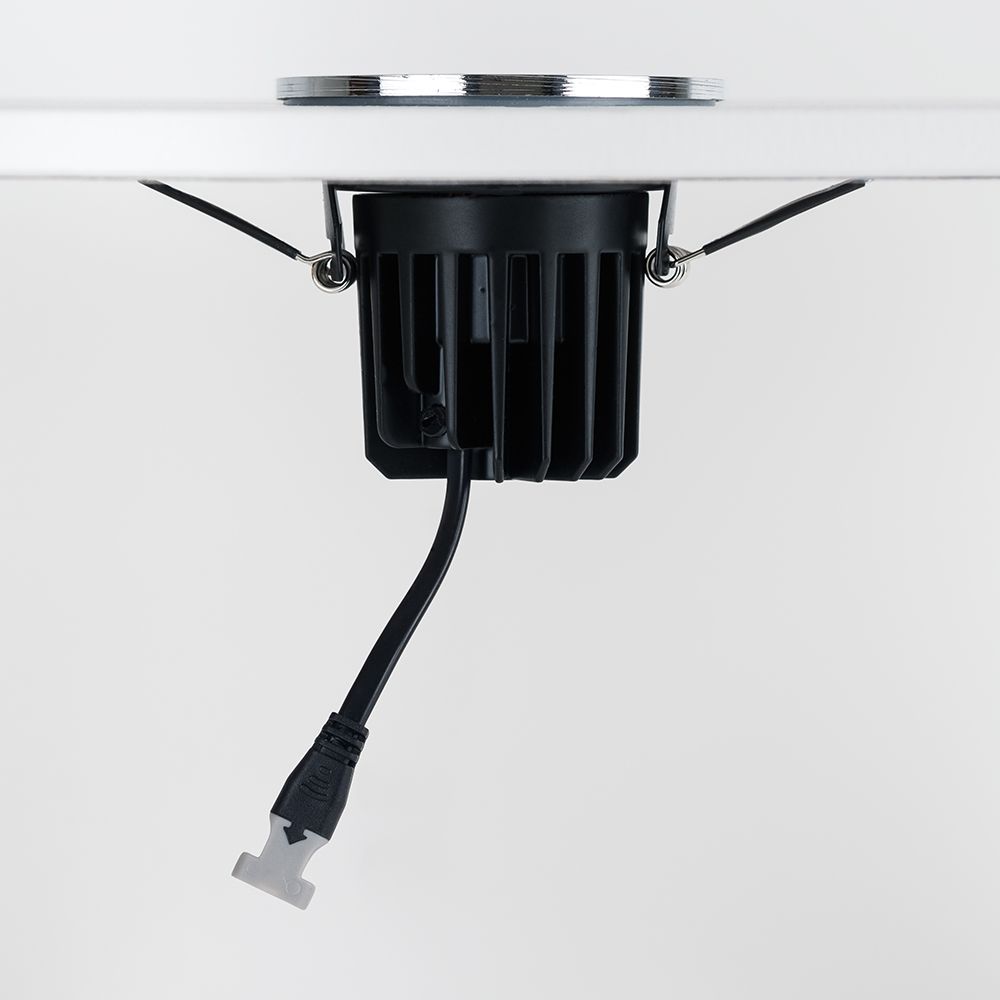High CRI LED downlights in a beautiful Polished Chrome finish. This high CRI fixed Polished Chrome LED downlight from our collection of Soho Lighting dimmable fire rated downlights has a front-facing CCT easy switch (Changing Colour Temperature) for easy access which enables you to quickly change between 3000K (warm white), 4000K (daylight white) and 6000K (cool white).