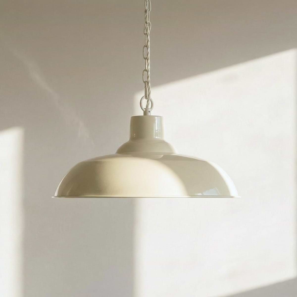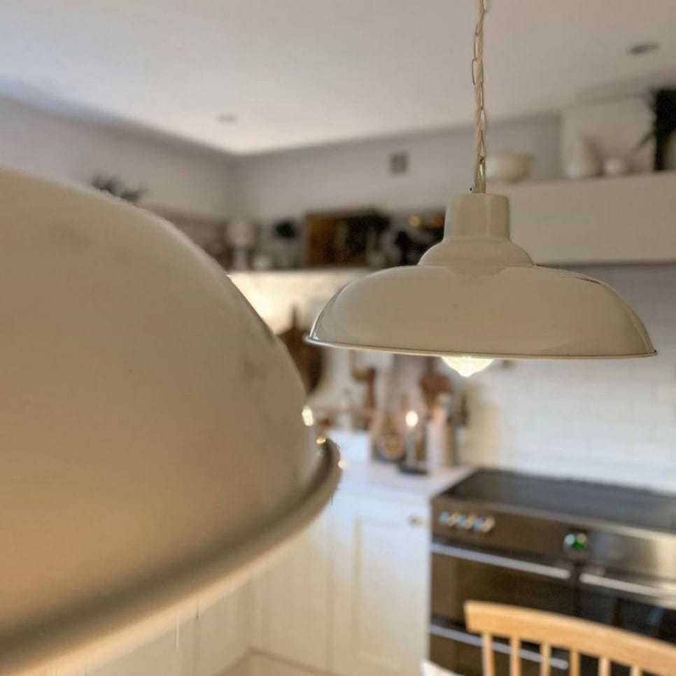 Handmade to mimic a vintage enamelled light, the Portland is ideal for breakfast bars or dining tables. The inside of the shade is finished in classic off-white to enhance light output.
