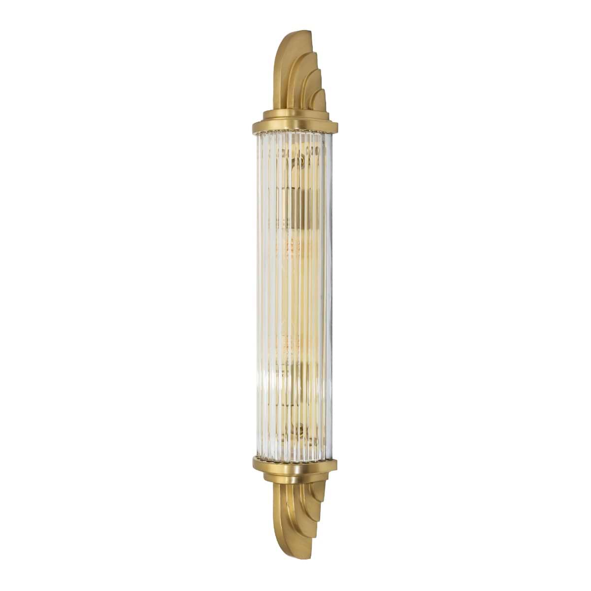 The sleek lines of our stunning Sheraton brass pillar wall light will add style and sophistication to any interior. The art deco scallop shell detailing is hand finished in solid brass and the beautiful prismatic glass casts out pure, uninhibited light to perfectly illuminate the space around. These exquisite lights are especially effective at lighting mirrors.
