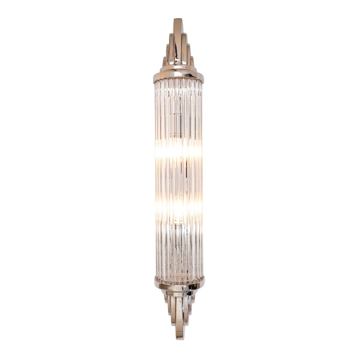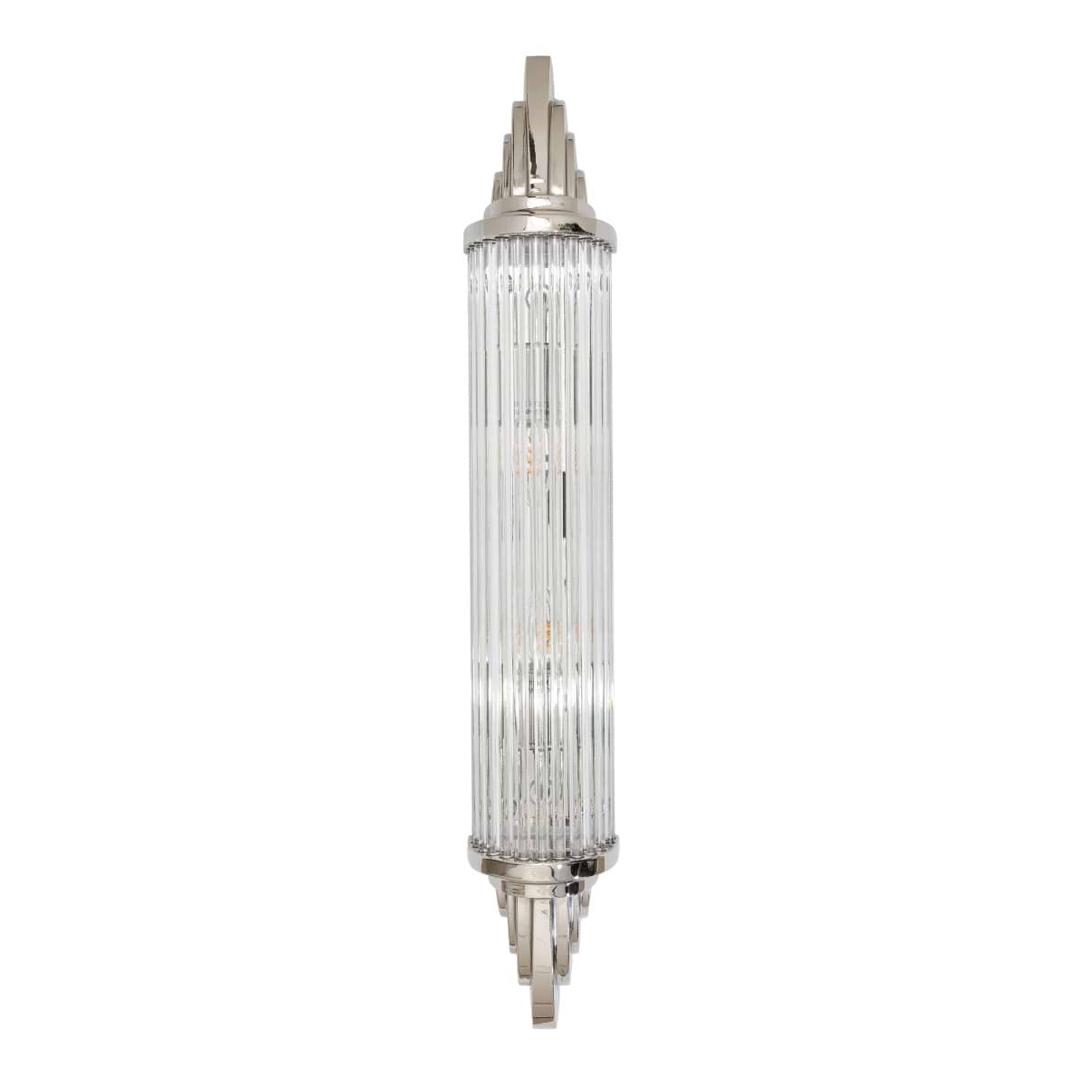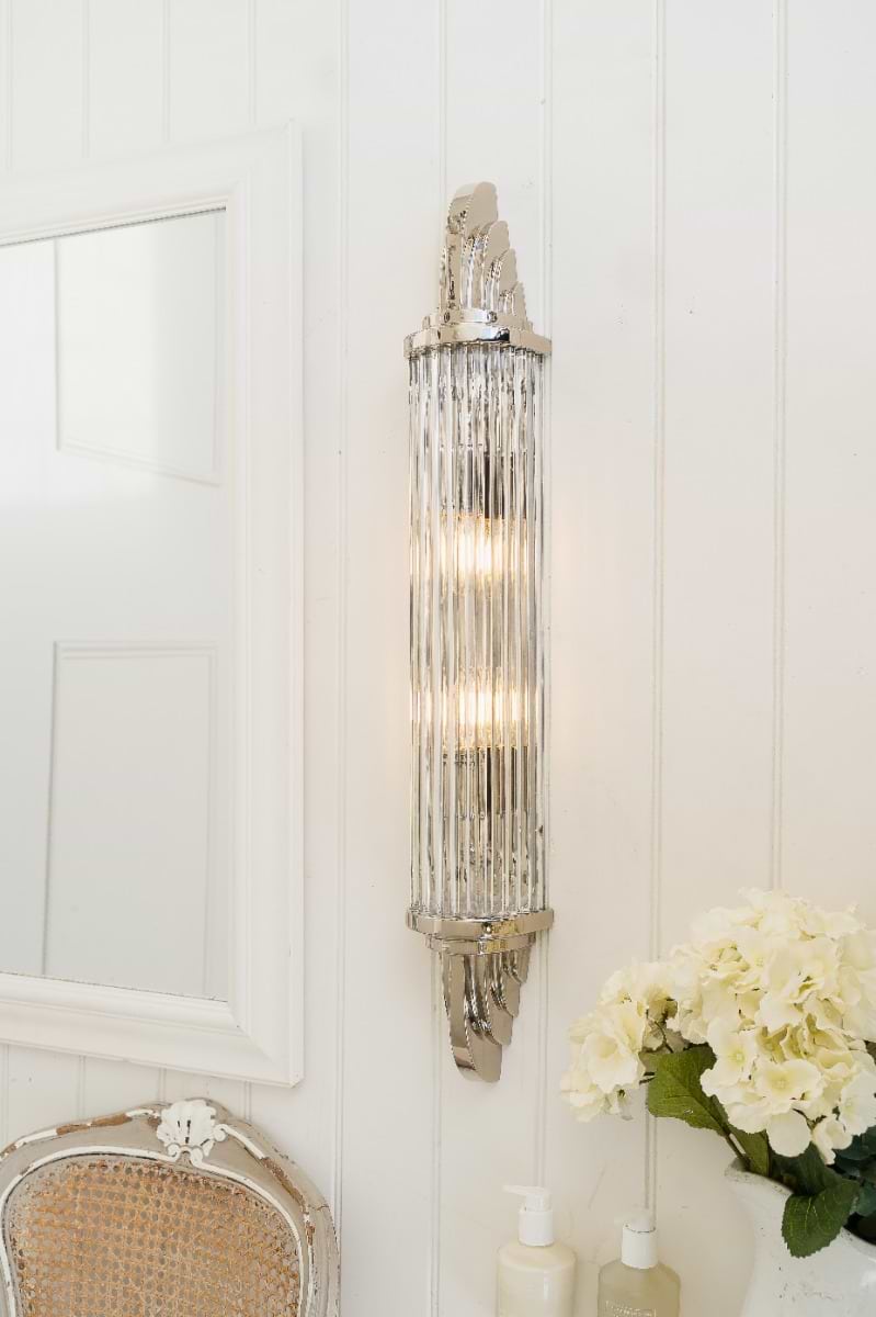 The sleek lines of our stunning Sheraton Nickel pillar wall light will add style and sophistication to any interior. The art deco scallop shell detailing is hand finished and the beautiful prismatic glass casts out pure, uninhibited light to perfectly illuminate the space around. These exquisite lights are especially effective at lighting mirrors.