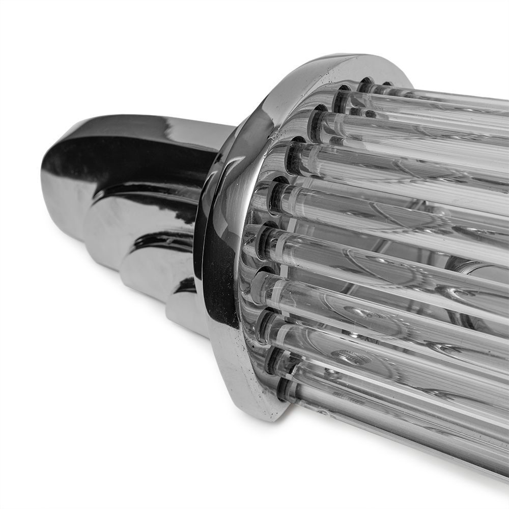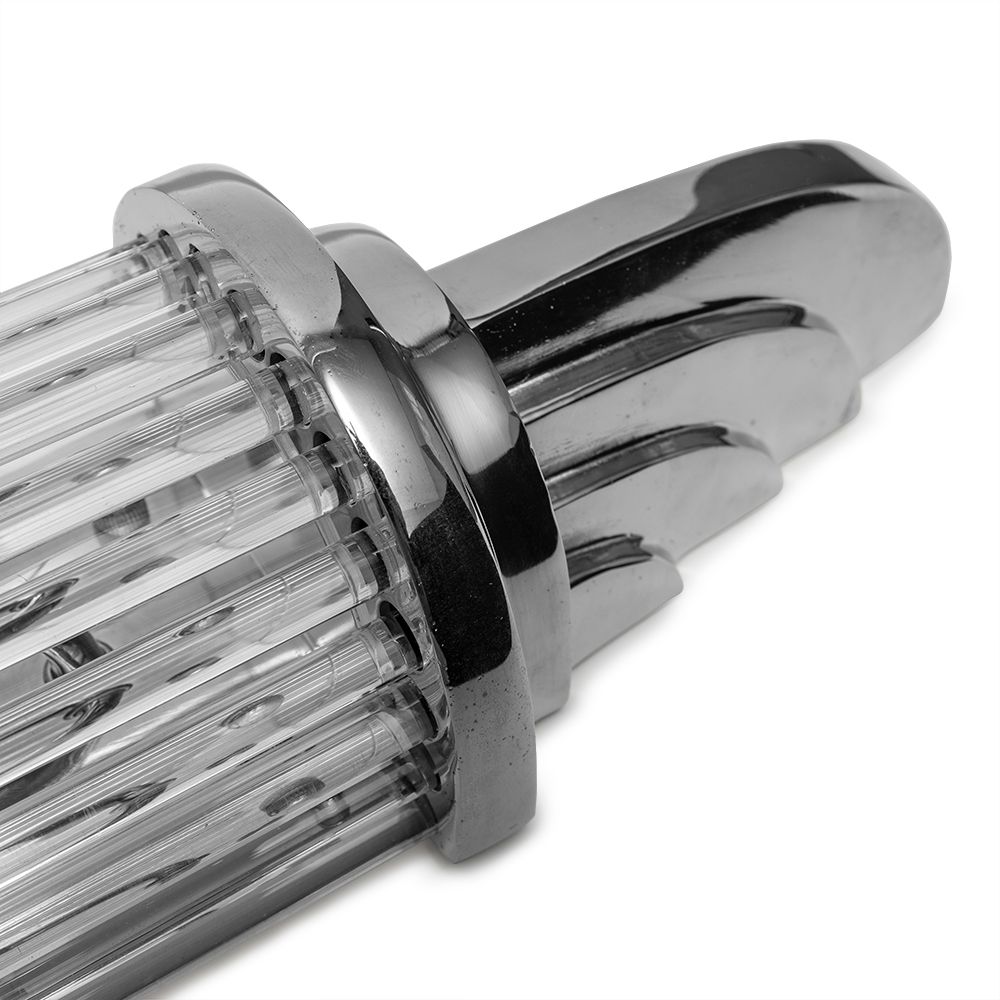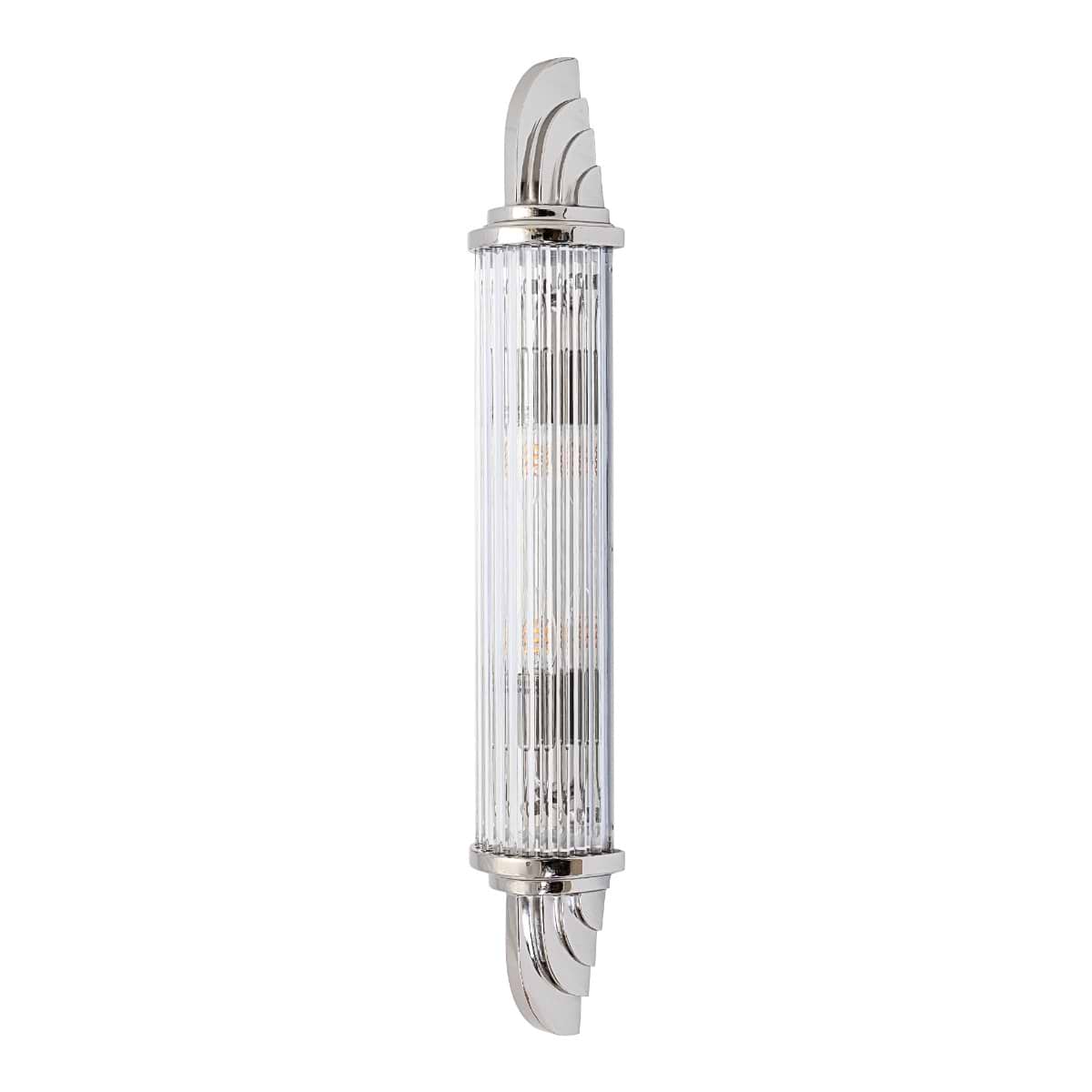 The sleek lines of our stunning Sheraton Nickel pillar wall light will add style and sophistication to any interior. The art deco scallop shell detailing is hand finished and the beautiful prismatic glass casts out pure, uninhibited light to perfectly illuminate the space around. These exquisite lights are especially effective at lighting mirrors.