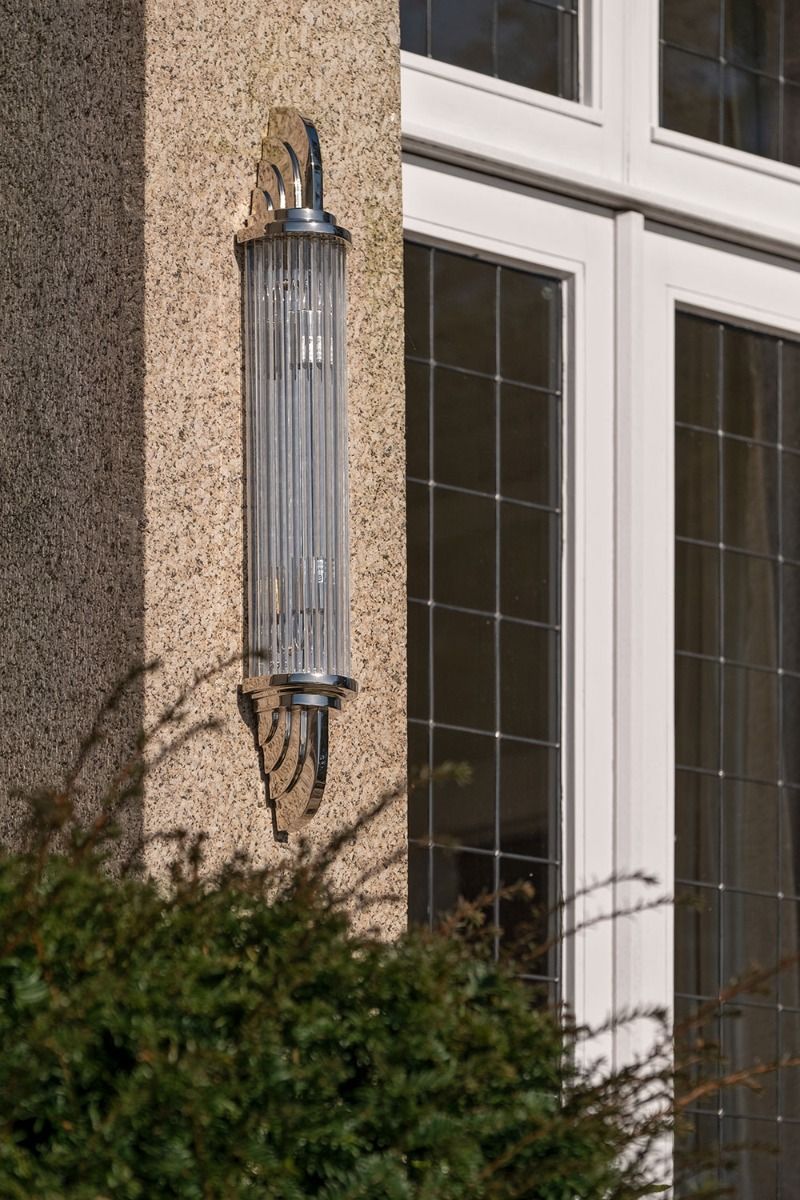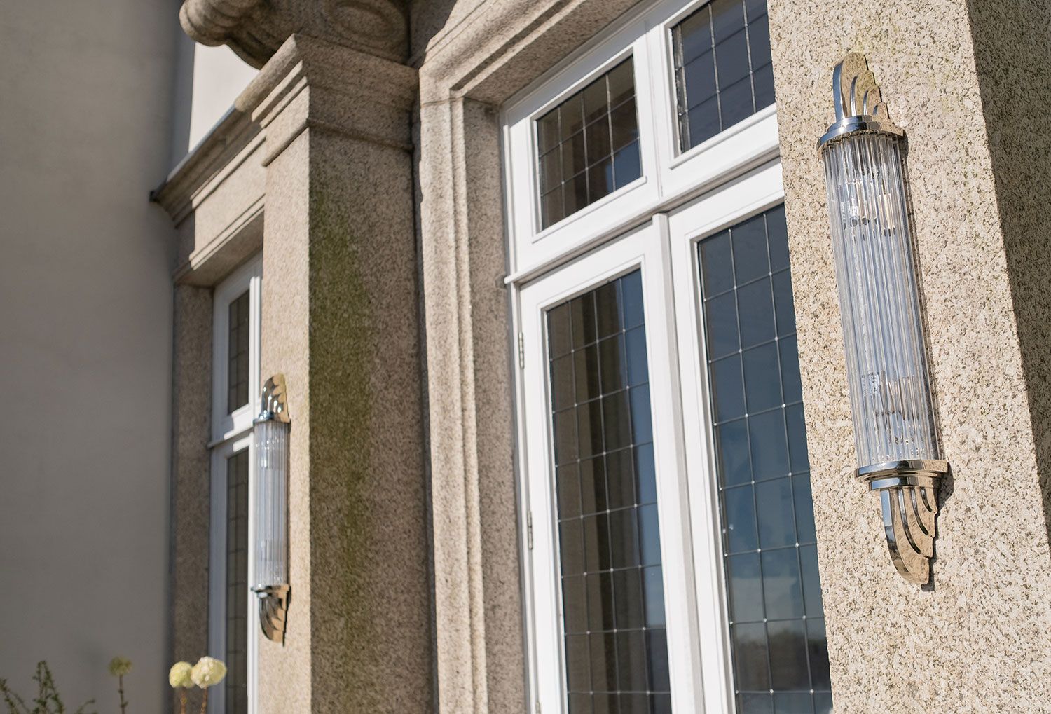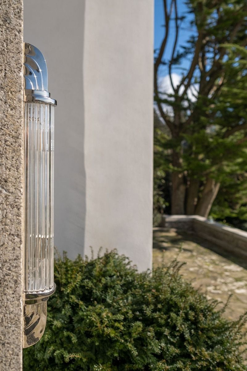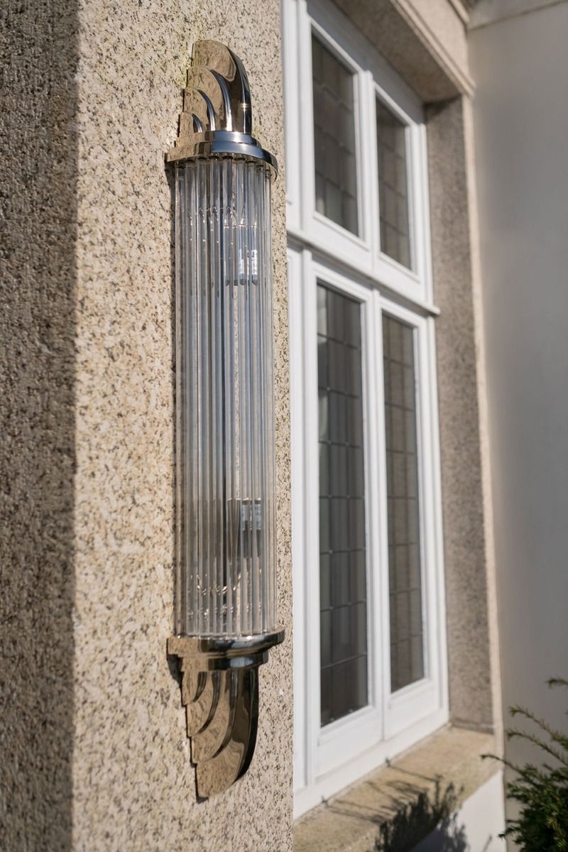 The Sheraton wall light is IP44 rated and suitable for bathroom zones 2&3. Striking when placed outside in covered areas such as porches, but unsuitable for exterior exposed walls.