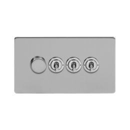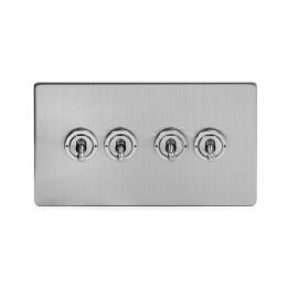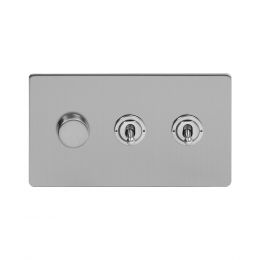 Our brushed chrome decorative toggles and dimmers offer an exquisite modern touch to your space, with a distinct texture that will blend perfectly with your chosen switch plates. Browse our designs to complete your switch, and even match your dimmer and toggles for a unified interior.
