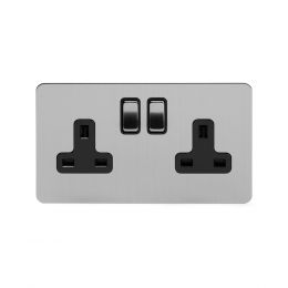 The smooth, rounded edges and subtle lustre and sheen finish give these brushed chrome & black flat plate sockets and switches an understated style which makes it compatible with most interiors making it a very popular choice.