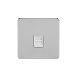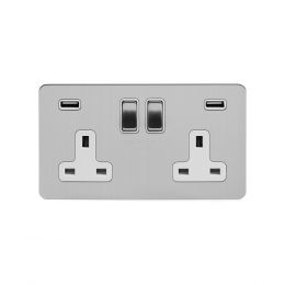 The smooth, rounded edges and subtle lustre and sheen finish give these brushed chrome & white flat plate sockets and switches an understated style which makes it compatible with most interiors making it a very popular choice.