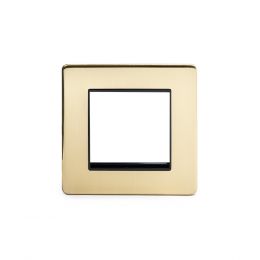 21. The Savoy Collection Brushed Brass 1 Gang 2 Module Brush Plate Blk Ins Screwless