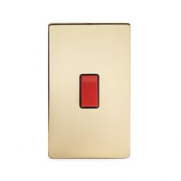 42. The Savoy Collection Brushed Brass 45A 1 Gang Double Pole Switch Large Plate Blk Ins Screwless