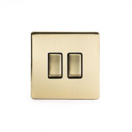 58. Soho Lighting Brushed Brass 2 Gang Retractive Switch Blk Ins Screwless