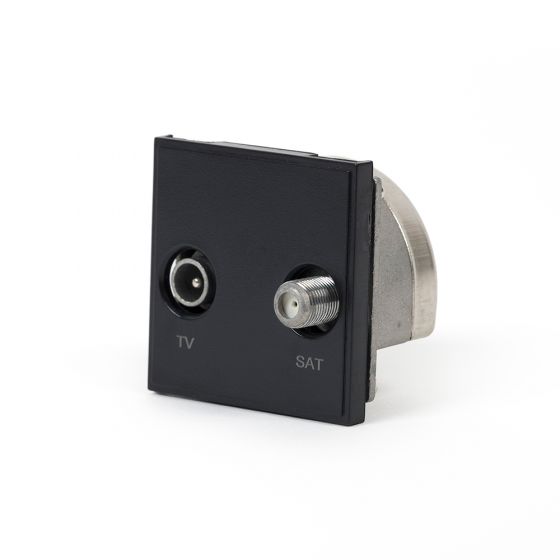 Our 50mm x 50mm dual TV (female) and screened satellite F Connector Euro Module is available in a black or white finish and is designed to provide TV and satellite connectivity on single plate. The back section has a dual termination block to secure incoming cable terminals. This EM Module is compatible with our Euro Module EM Floor and Wall Plates. This enables you to build bespoke socket or multimedia plates, combining connection outlets such as CAT 5/6, BT, Satellite, USB or HDMI etc. onto a single plate. This EM module is not compatible with RM, CM, (RM+CM), EM, LT1, LT2 or LT3 Plates.