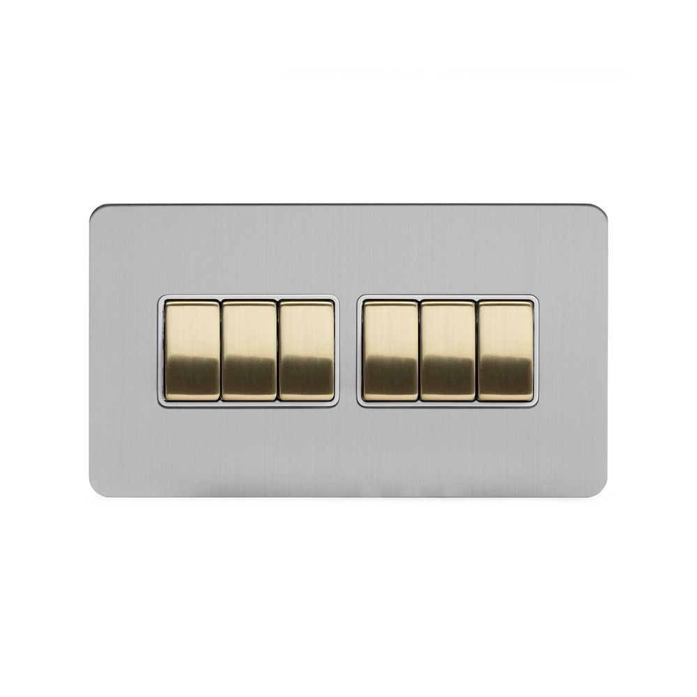 Soho Lighting Brushed Chrome & Brushed Brass 10A 6 Gang 2 Way Switch White Inserts Screwless