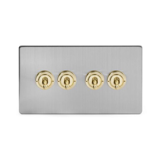 Soho Lighting Brushed Chrome & Brushed Brass 20A 4 Gang 2 Way Toggle Switch Screwless