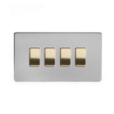 This eclectic gold and silver mix of cool brushed chrome against elegant brushed brass creates a unique and sophisticated look. Part of the Soho Fusion range of sockets and switches, this 45A Cooker Control Unit & Neon has a screwless, brushed chrome plate adorned with a brushed brass switch.