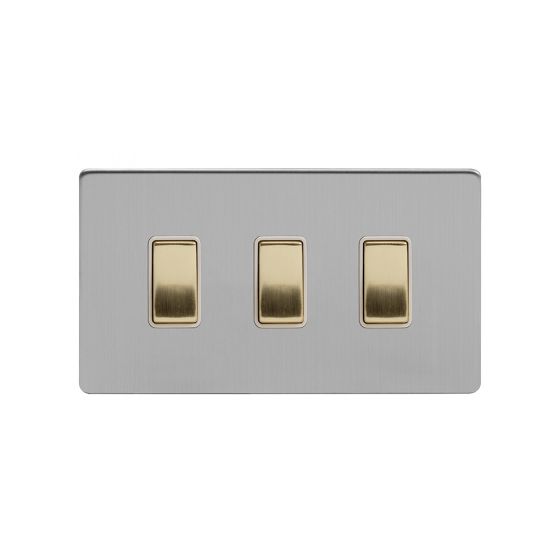 Soho Lighting Brushed Chrome & Brushed Brass 10A 3 Gang Switch on Double Plate 2 Way Screwless
