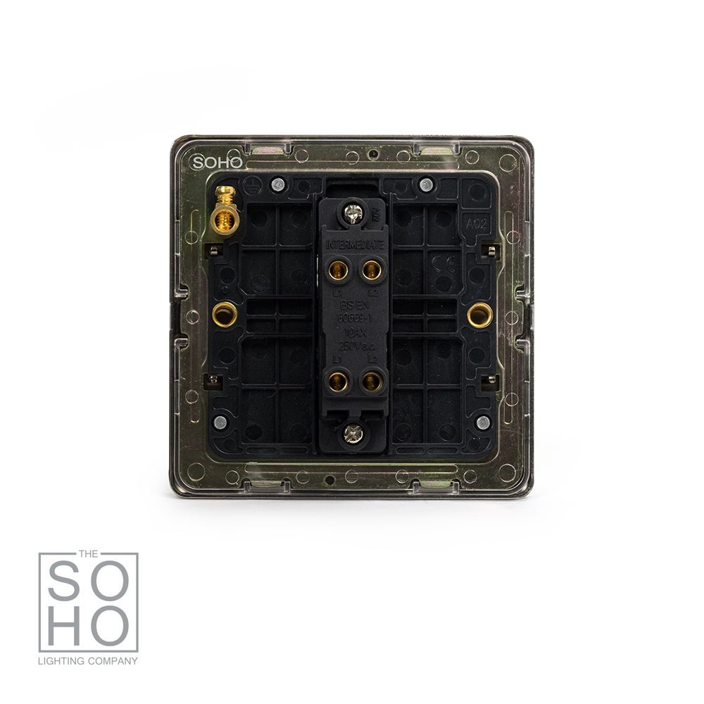 This Matt Black & Brushed Brass 10A 1 Gang Intermediate Switch Black Insert has a beautiful screwless finish. This is part of Our Matt Black and brushed brass Fusion range. The masculine and contemporary matt black mixes with the elegant brushed brass to create a unique and commanding look.