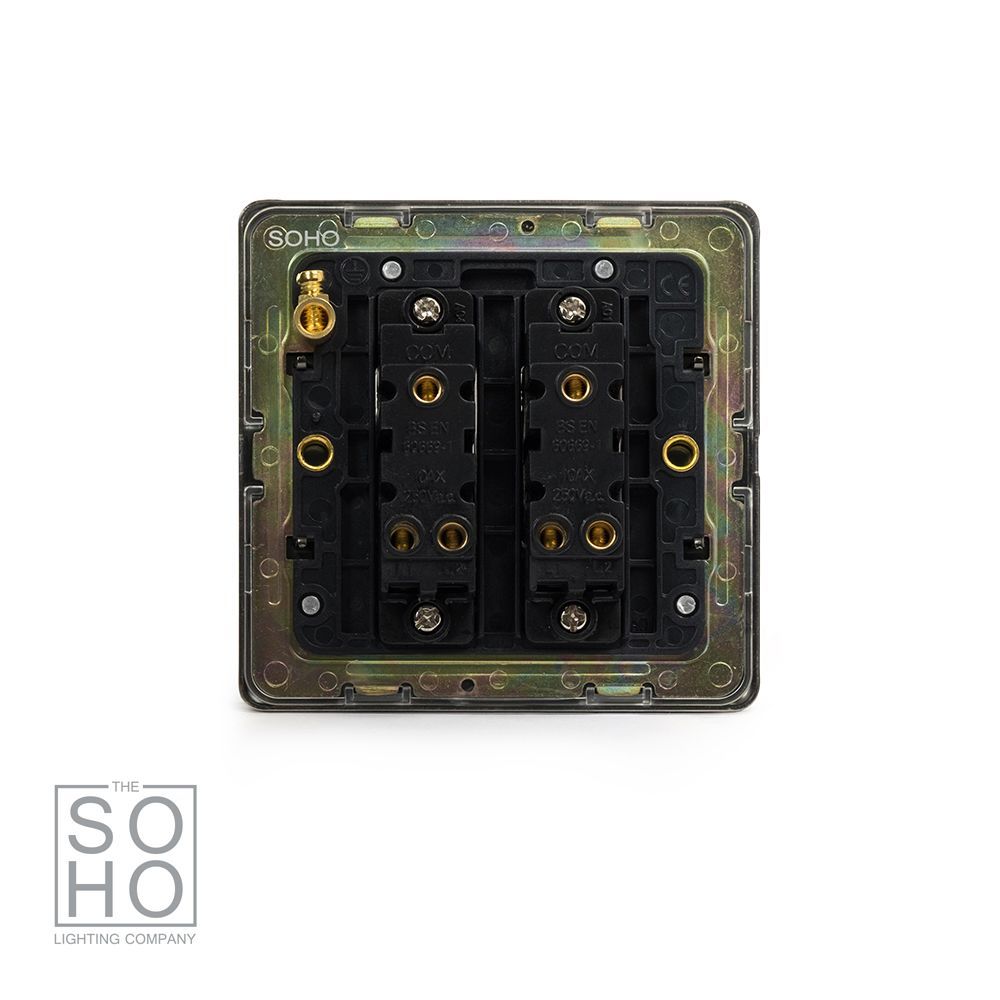 The Camden Collection Matt Black & Brushed Brass 10A 2 Gang 2 Way Switch Black Insert Screwless