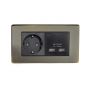 The Charterhouse Collection 2 Gang European Schuko Socket with USB Screwless Antique Brass