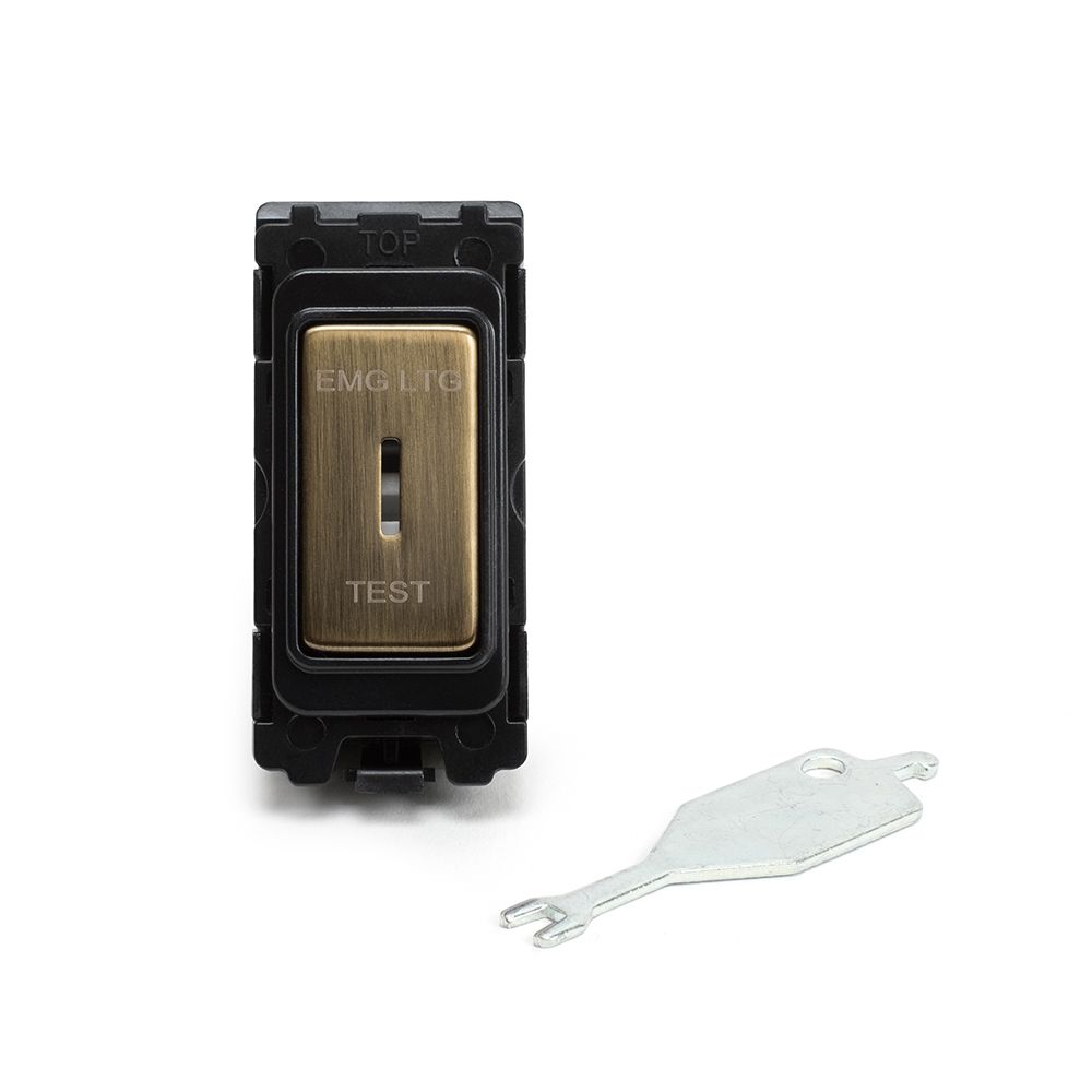 The Charterhouse Collection 20AX 2 Way Single Pole 'EMG LTG TEST' RM-Grid Switch Module Antique Brass