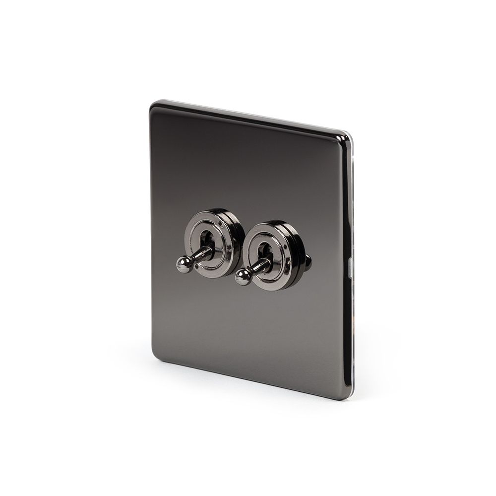 The Connaught Collection Black Nickel 2 Gang Intermediate Toggle Switch Screwless