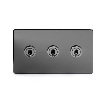 The distinctive look and stylish screwless finish of this luxury Black Nickel 4 Gang Intermediate Toggle Switch provides a perfect complement to modern/contemporary kitchens with black appliances, modern bathrooms or rooms with televisions or other popular electrical equipment.