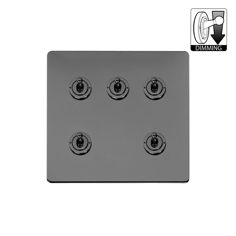 The Connaught Collection Black Nickel 5 Gang Dimming Toggle Switch