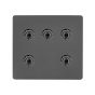The Connaught Collection Black Nickel Flat Plate 5 Gang Toggle Light Switch 20A 2 Way Screwless