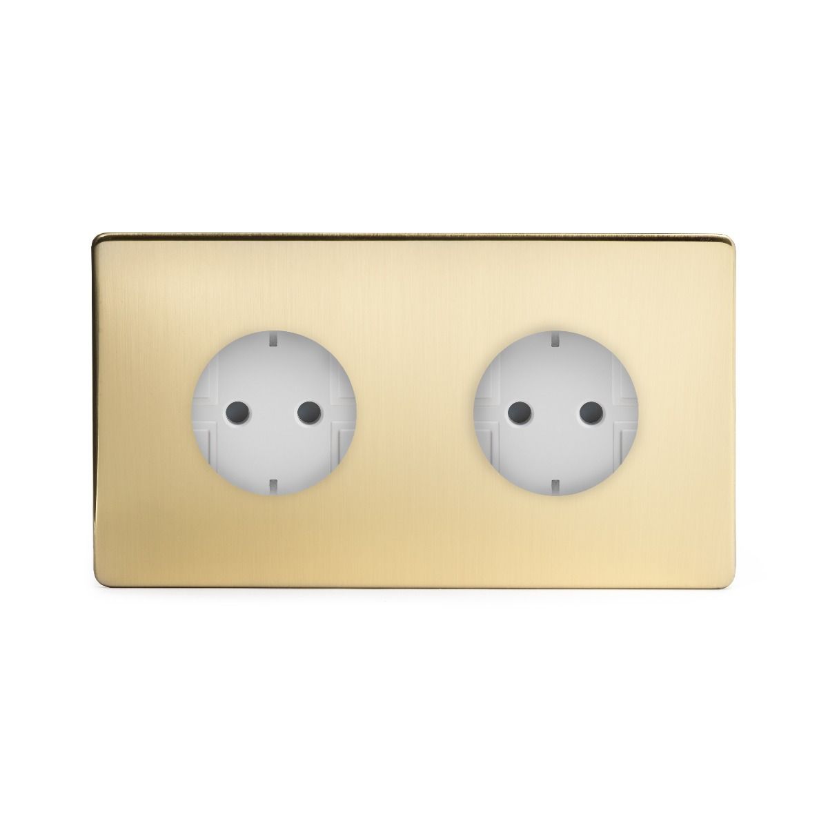 The Savoy Collection Brushed Brass 16A 2 Gang Euro Schuko Socket Wht Ins Screwless