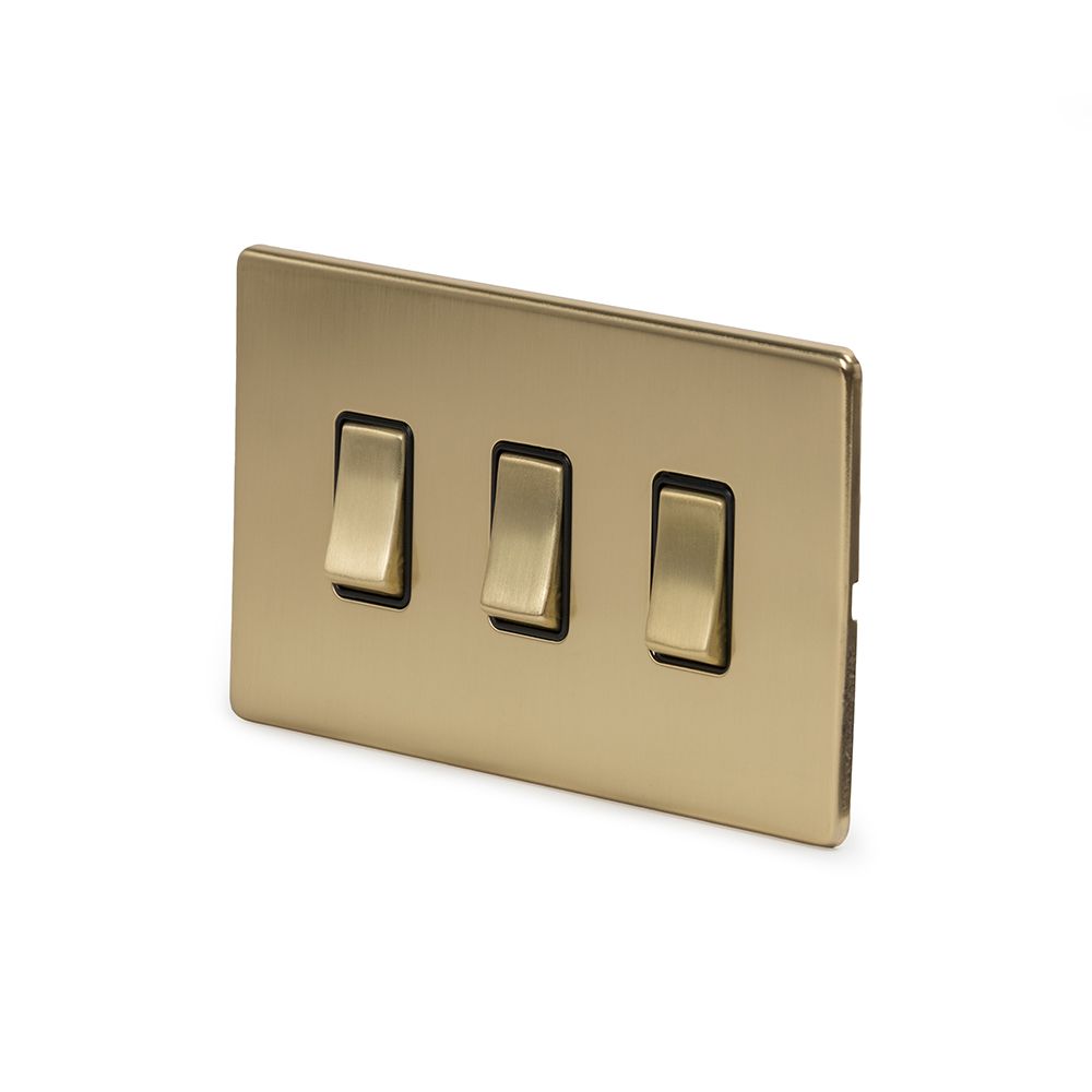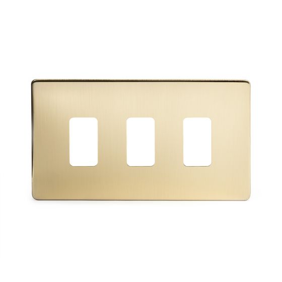 The Savoy Collection Brushed Brass 3 Gang RM Rectangular Module Grid Switch Plate